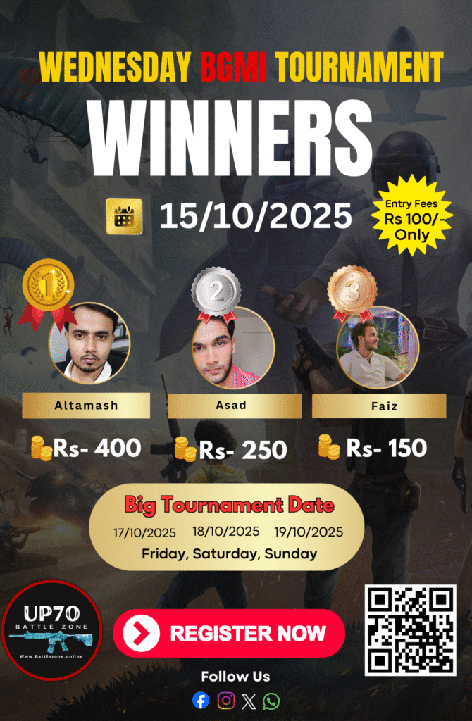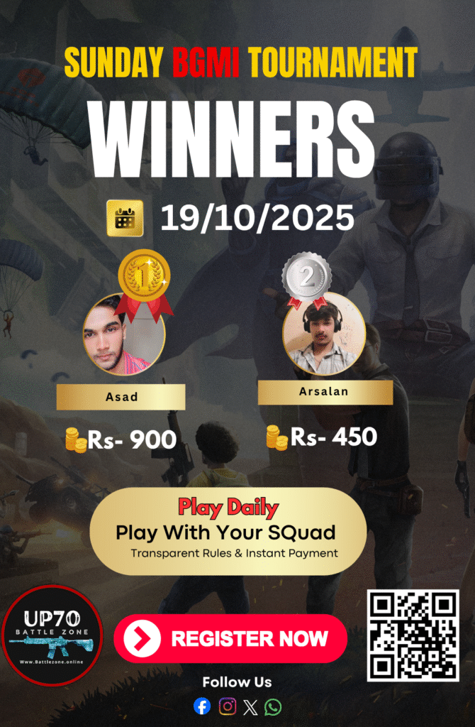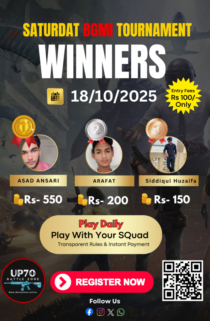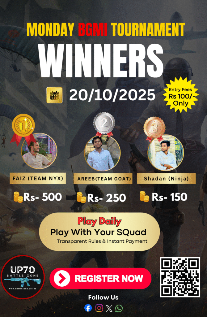 Trusted by Prayagraj players β weekly tournaments Affordable entry fee β only βΉ10/squad Unlimited attempts in qualifiers Instant prize payouts with UPI proof Transparent rules & leaderboards